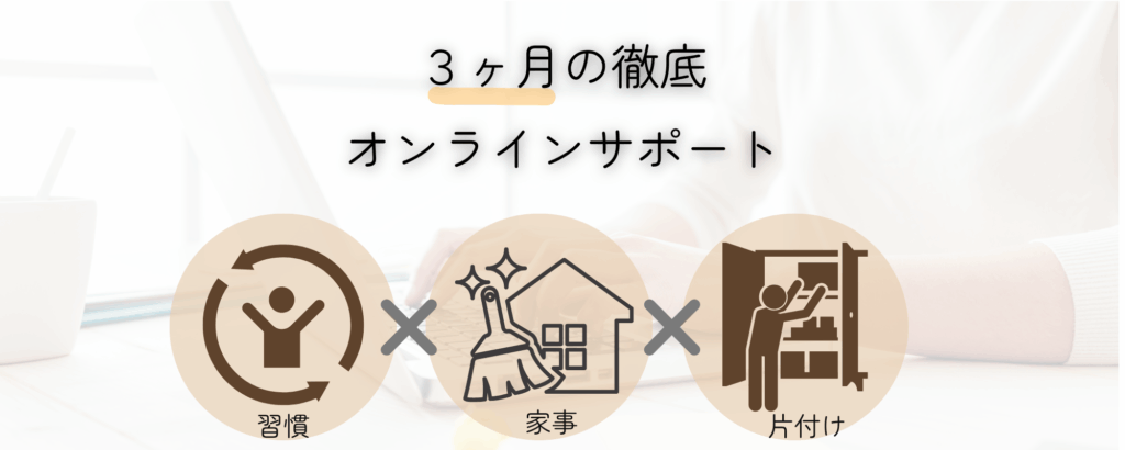 習慣×家事×片付けによる、3ヶ月で結果で出るように、徹底されたカリキュラムをあなたに合った形のオーダーメイド型にサポートを進めていきます。